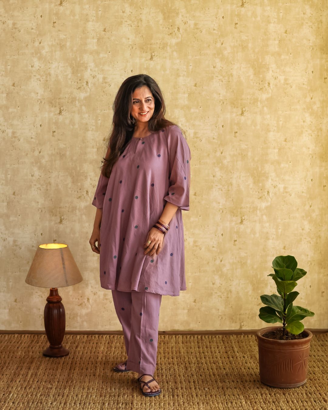 Cappuccion beautiful flared cord set with handwoven fabric.