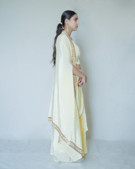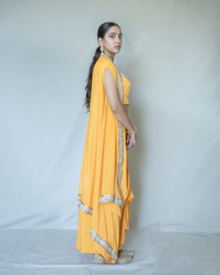 Peach Champagne Cape-Draped Skirt Set