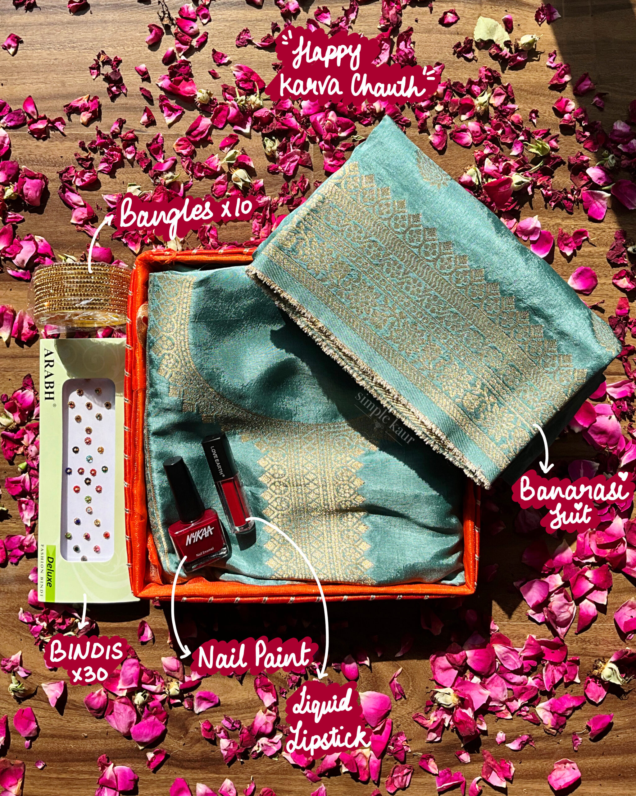 Ocean Green Banarasi Suit Festive & Karva Chauth Hamper