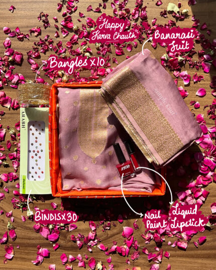 Be the first to review “Stone Grey Banarasi Suit Festive & Karva Chauth Hamper” Cancel reply