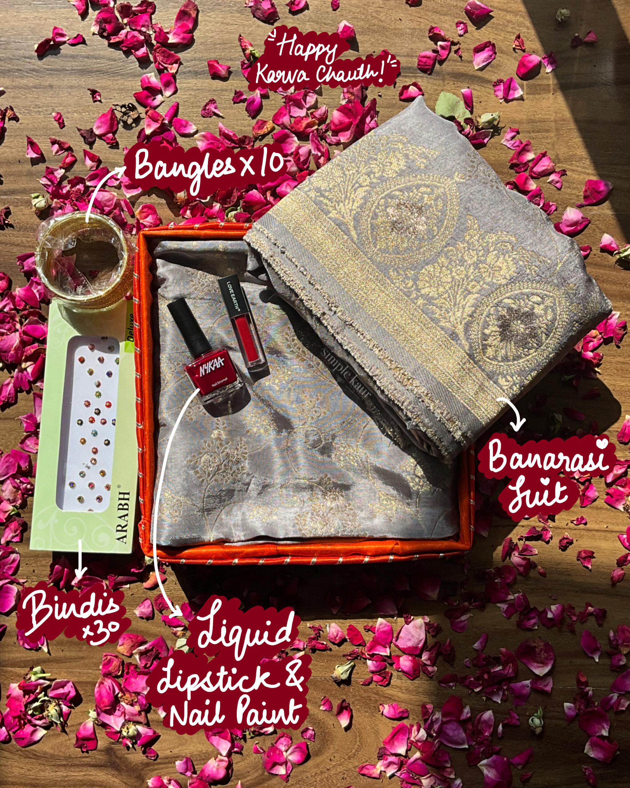 Stone Grey Banarasi Suit Festive & Karva Chauth Hamper